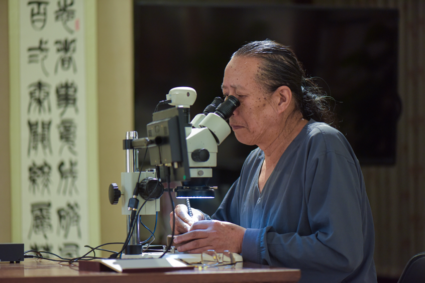 “麻将牌”上镌刻一部2万余字的《唐诗三百首》,不到一平方厘米的筷子头上雕刻数百字的《心经》……这些看似不可能完成的创作,在艺术家手中成为可能。