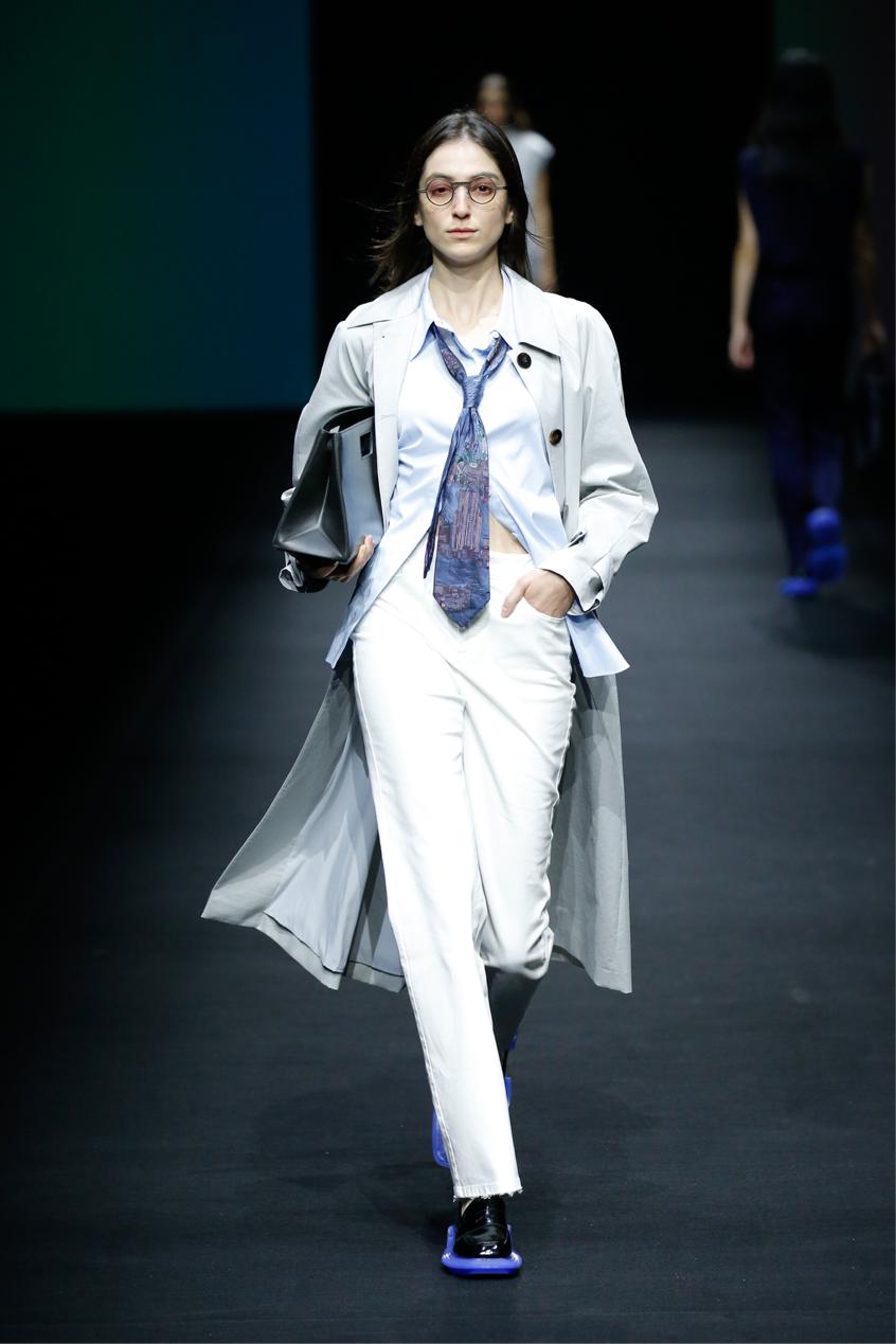 西装、白衬衫与牛仔裤,衣服做旧的毛边与随手系上的纽扣,正如她们留下的文字,简单而有力。他们坦然自若地走过城市街头,本白和墨水蓝色系,特制面料穿搭出无性别主张,镀膜工艺长款风衣带来缤纷色彩下保留的年代斑驳感;铜氨面料西装马甲设计,加以毛边细节修饰,真丝套装由同种材质暗纹领带点缀,经典往往是设计过程中的一次次矛盾与一次次和解 。
