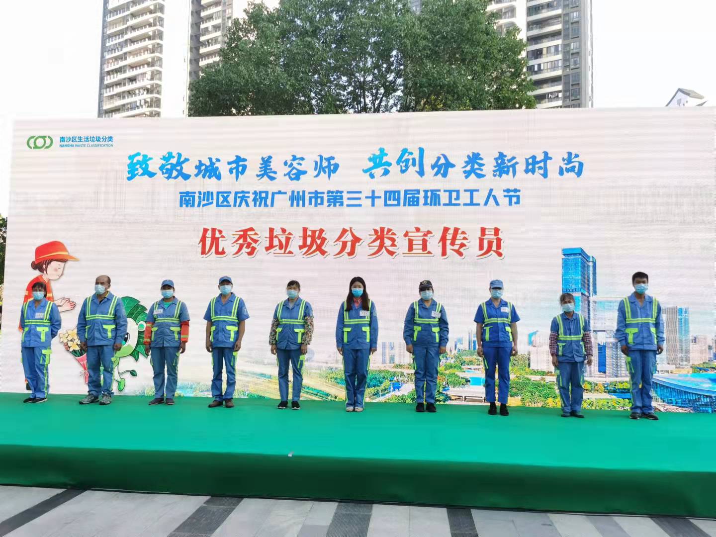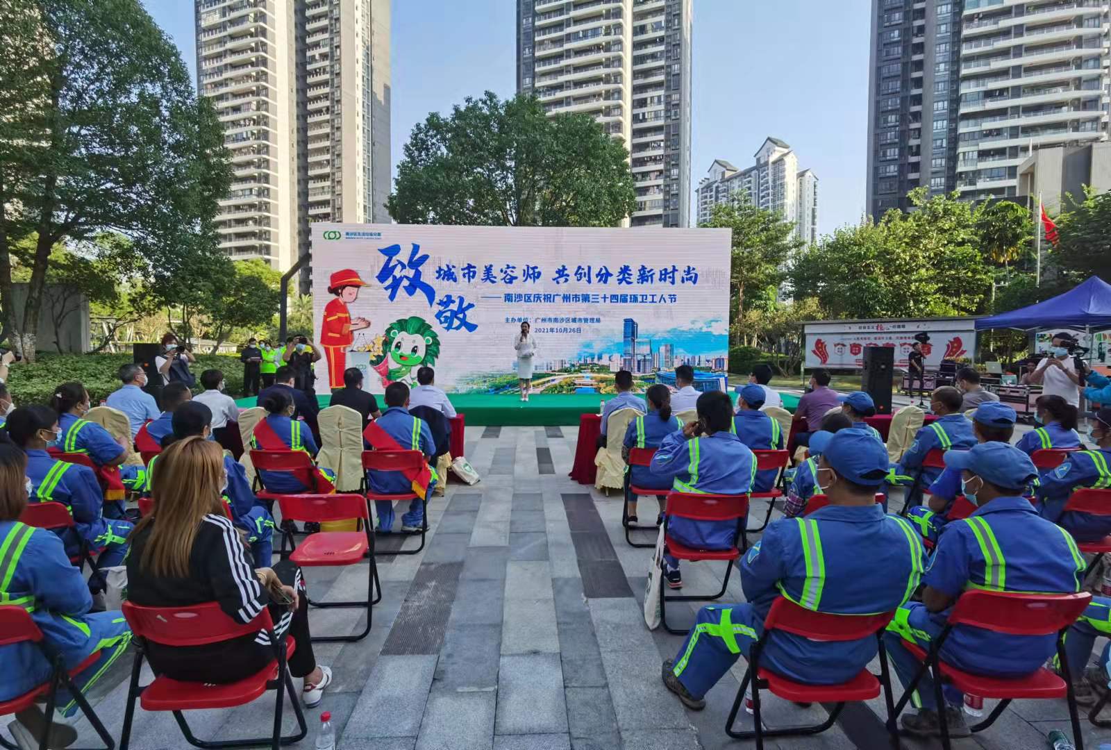 10月26日,是广州市第三十四届环卫工人节。当日,南沙区组织开展以“致敬城市美容师,共创分类新时尚”为主题的环卫工人节庆祝活动,以多元、多样、多彩的“五个一”系列活动体验,致敬最可爱的“城市美容师”。