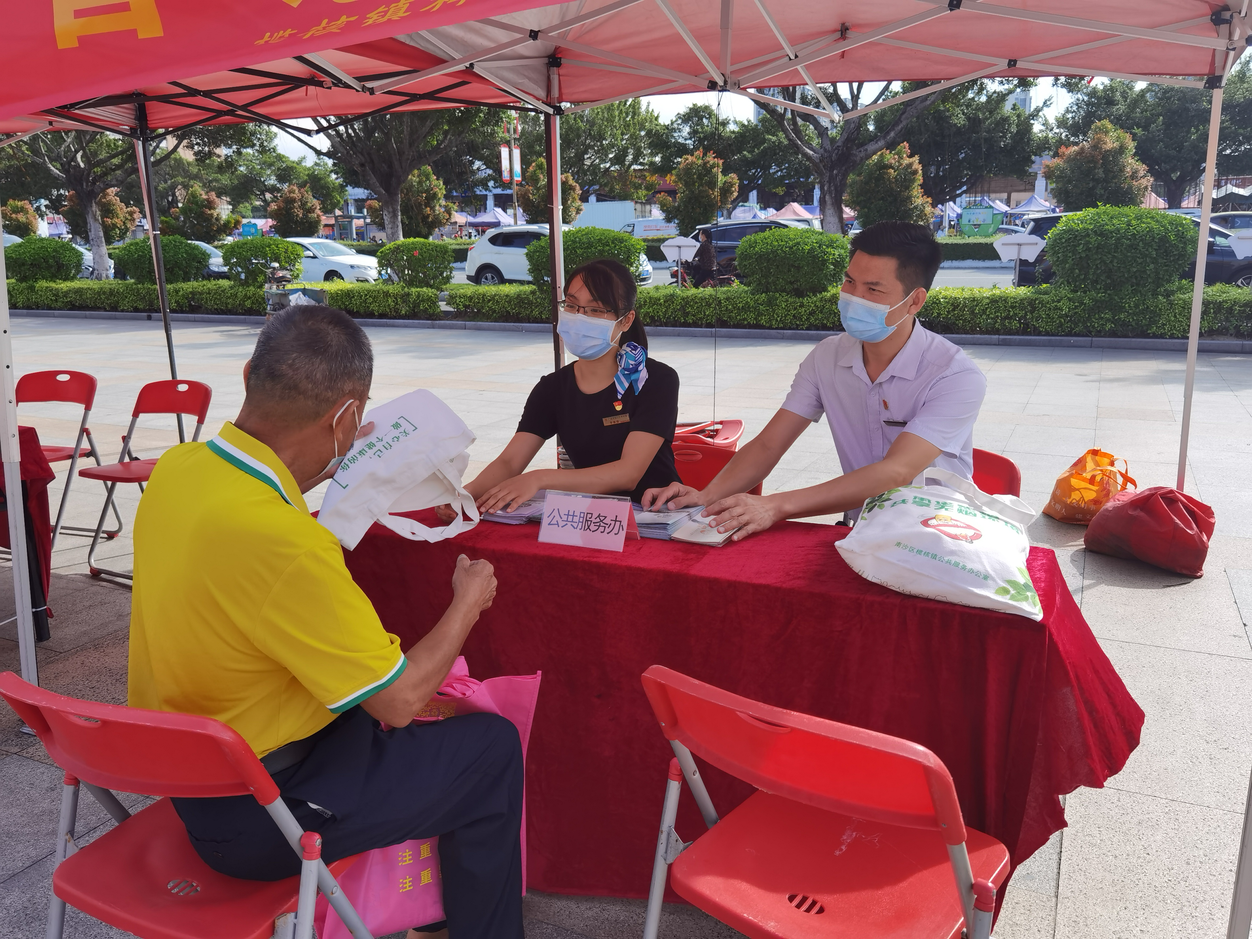 近日,南沙区榄核镇政务服务中心(以下简称“政务中心”)安排工作人员在榄核镇星海文化广场开展政务宣传活动,对群众和企业最关心的商事登记、养老保险和医疗保险参保、食品经营许可证和老年人优待证等热点事项开展咨询和服务指导。据统计,本次政务咨询活动共接待群众30多人次,发放中心宣传资料50多份。