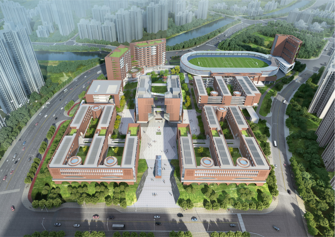 学校占地面积约154亩,总投资15亿元,校舍包括高中教学楼、初中教学楼、实验楼、艺术图书楼、初中宿舍楼、高中宿舍楼、学生活动中心、教育资源楼等。