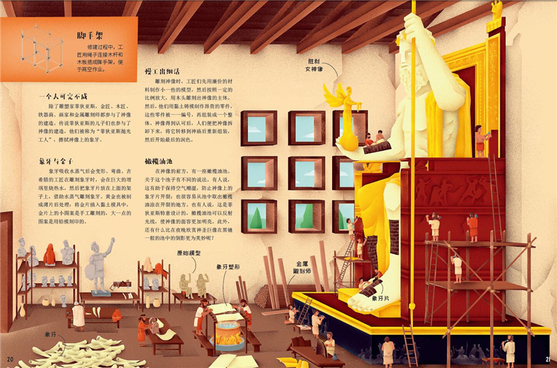 《美的旅程:世界奇迹是如何建成的》用诙谐意外的古老故事、精美流畅的画面,精细拆解世界七大奇迹的建筑结构、装饰风格,用细致的插图详尽描述奇迹的修建过程。在书中,你可以了解到金字塔的内部结构、宙斯神像的象牙塑形技术、原始的脚手架和滚轮怎样运送千斤巨石……在辉煌的场景和丰富的想象中,直观感受这些在历史长河中熠熠生辉的非凡杰作,在啼笑皆非的故事中解开古老文明的神秘面纱。