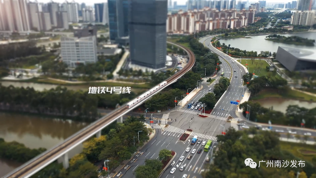 微型地铁四号线变得极为小巧可爱,小型马路上的轿车也好像变成了孩童依次摆好的玩具模型。
