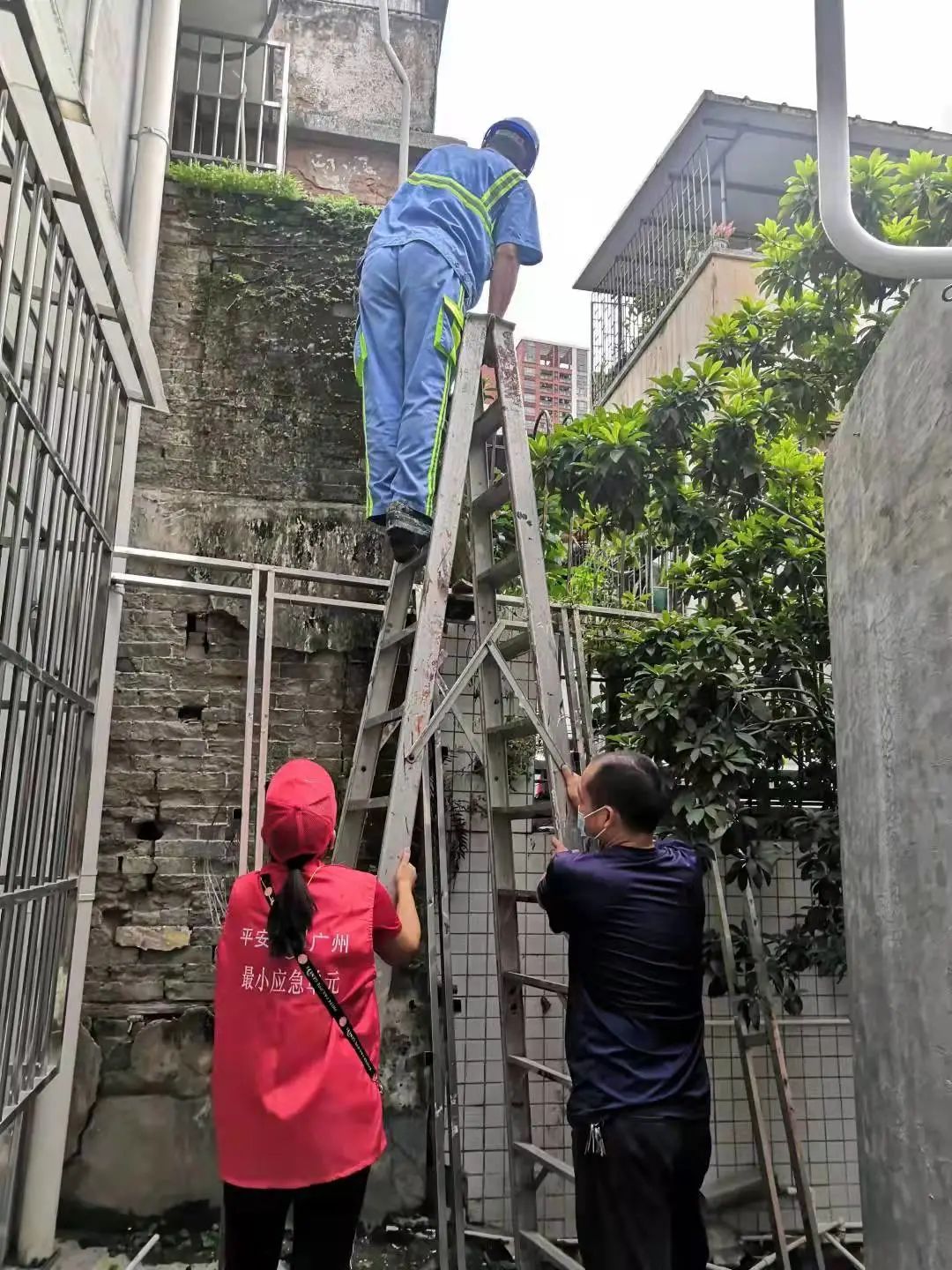 幼儿园一处房屋墙上萌发了一棵榕树,已深深扎根在了房屋的墙缝里。随着树干不断长大,引起墙面上的砖块松动。由于该房屋下面是儿童活动场所,为及时消除这些隐患,龙津街及时协调职能部门将存在安全隐患的榕树修剪清除,并对墙面进行修复加固。