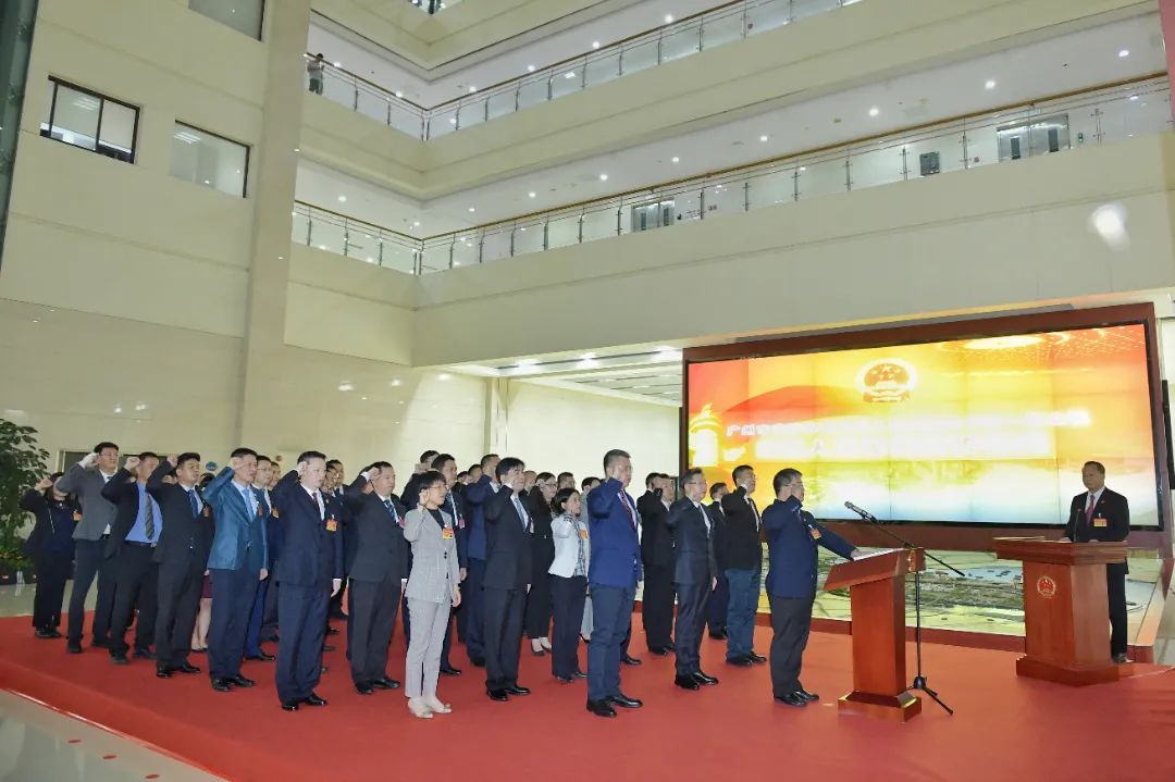 会议结束后,由广州市委常委、南沙区委书记卢一先监誓,南沙区四届人大常委会主任李德球领誓,全体新当选人员一起参加了向宪法宣誓仪式。