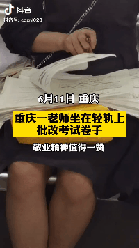 在重庆,一位老师坐在轻轨上批改试卷。虽然旁边人在说话聊天,但丝毫不影响老师批改卷子的速度。网友不禁感叹道:“敬业精神值得一赞”