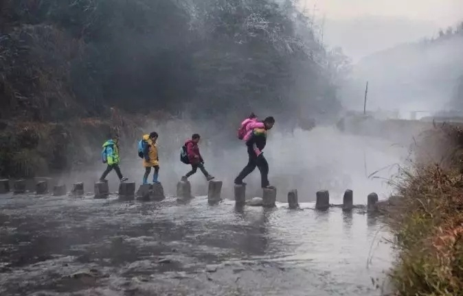 江老师是江西省上饶市婺源县清华镇小源口村小学的班主任兼语文老师兼数学老师,学校里只有五个学生。由于自己的孩子在镇上读小学,不得不每天来回穿梭于乡村与镇上这二十公里之间:“即使有一个学生我也要坚持。”