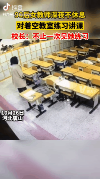 10月26日,河北唐山一位90后女教师对着空教室练习的视频火了。从视频中可以看出教室里空无一人,教室前几排的灯开着,应该是学生们都放学了,这位老师还在练习讲课。