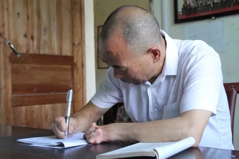湖南岳阳的黄亚飞老师双手有疾,为了练习夹住粉笔,他的手不知磨肿磨破了多少次。在乡村学校担任班主任40多年,他培养了三千多名学生。