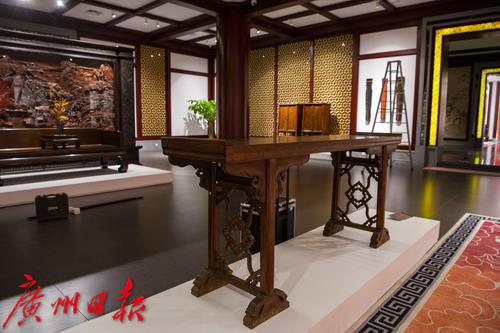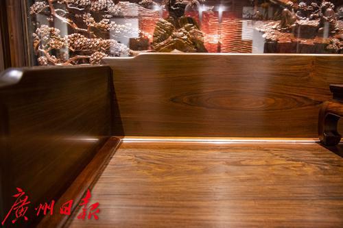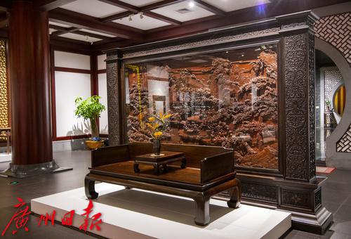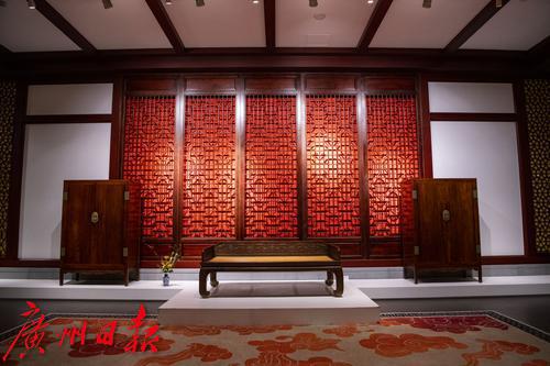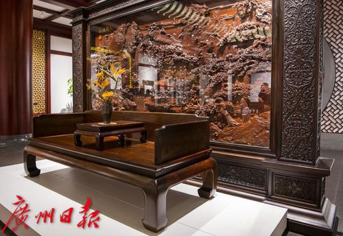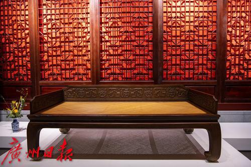 10月27日-28日,“中国嘉德2021年秋季拍卖会古典家具及工艺品部专场巡展”在位于广州番禺区的国家AAA景区永华艺术馆举行。94件文物艺术精品精彩亮相,其中包括古典家具、印章臻品、古琴文房等众多艺术门类的珍罕拍品,可谓佳作云集。在15件家具展品中,一件现代广作家具“三围屏风独板罗汉床”吸引千万目光。它并非古物古董,而是一件出自现代工匠之手的广作家具,“它之所以能够走进顶级拍场,一个重要原因是它主要由交趾黄檀制作而成,这种木材越来越稀有。”