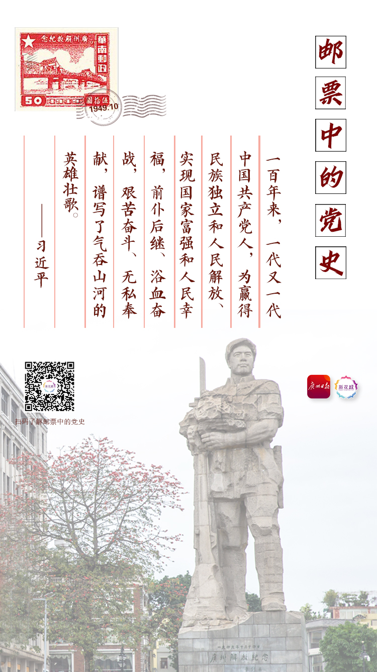 他介绍说,在解放区邮票中,有4套以城市名称冠名的纪念邮票,除了“南京上海”“淮南”“武汉”之外,就是“广州”。虽然邮票铭记使用“华南邮政”,但邮票未用“华南解放”或“广东解放”纪念,因为当时华南地区也好,广东地区也好,全境都未完全解放,广东省所辖的海南岛于次年5月才获得解放。