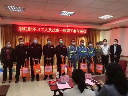 活动中,张苑向街道环卫职工致以节日的问候,对维护街道环境卫生不畏辛劳,坚守岗位的环卫职工表示感谢,并叮嘱环卫职工在做好工作的同时,要注意安全。广州万顺粮油贸易有限公司和广州佳乡粮贸易有限公司等爱心企业为环卫职工及街道抗疫一线职工发放慰问品。