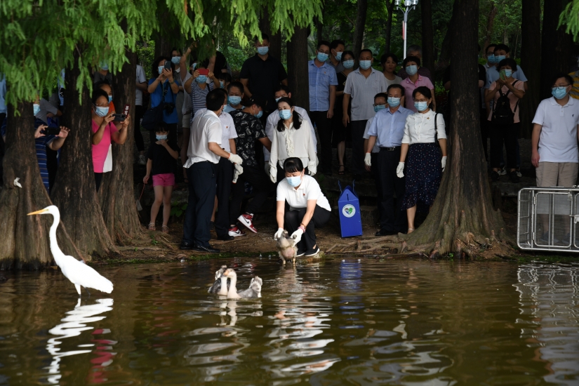 在麓湖公园,国家二级保护动物鸿雁、画眉,省重点保护动物黑水鸡、小白鹭自由自在地在水面畅游,国家三有保护动物骨顶鸡、八哥、夜鹭、赤腹松鼠等野生动物也在树林里奔跑嬉戏。在梅花园,管理方放归了乌龟、花龟和黄喉拟水龟等共60只水生野生动物,让小动物们回归自然,与青山绿水为伴,让云山更加明媚动人。