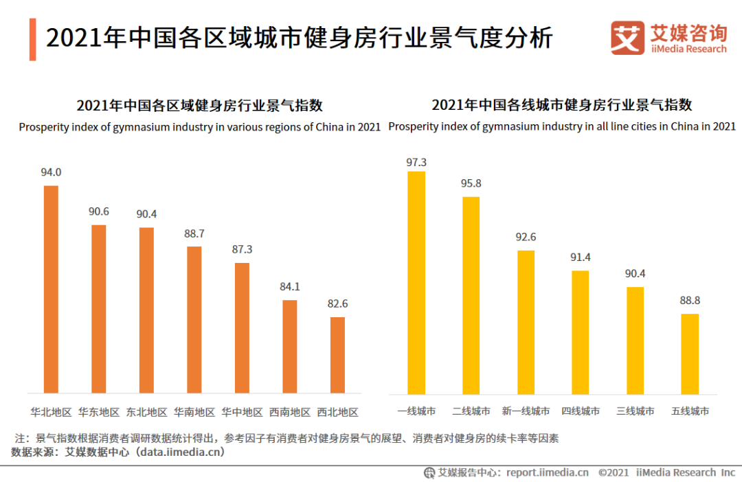 数据显示,北京、上海、广州和深圳四个一线城市健身房会员渗透率基本达到10%以上,已经达到或接近发达国家渗透率水平,部分准一线城市渗透率也已经接近10%,而国内整体渗透率为5%左右。艾媒咨询分析师认为,随着人们收入的不断提高,健身习惯正在从一线城市向二线以及低线城市扩展,未来二线以及低线城市市场潜力大。