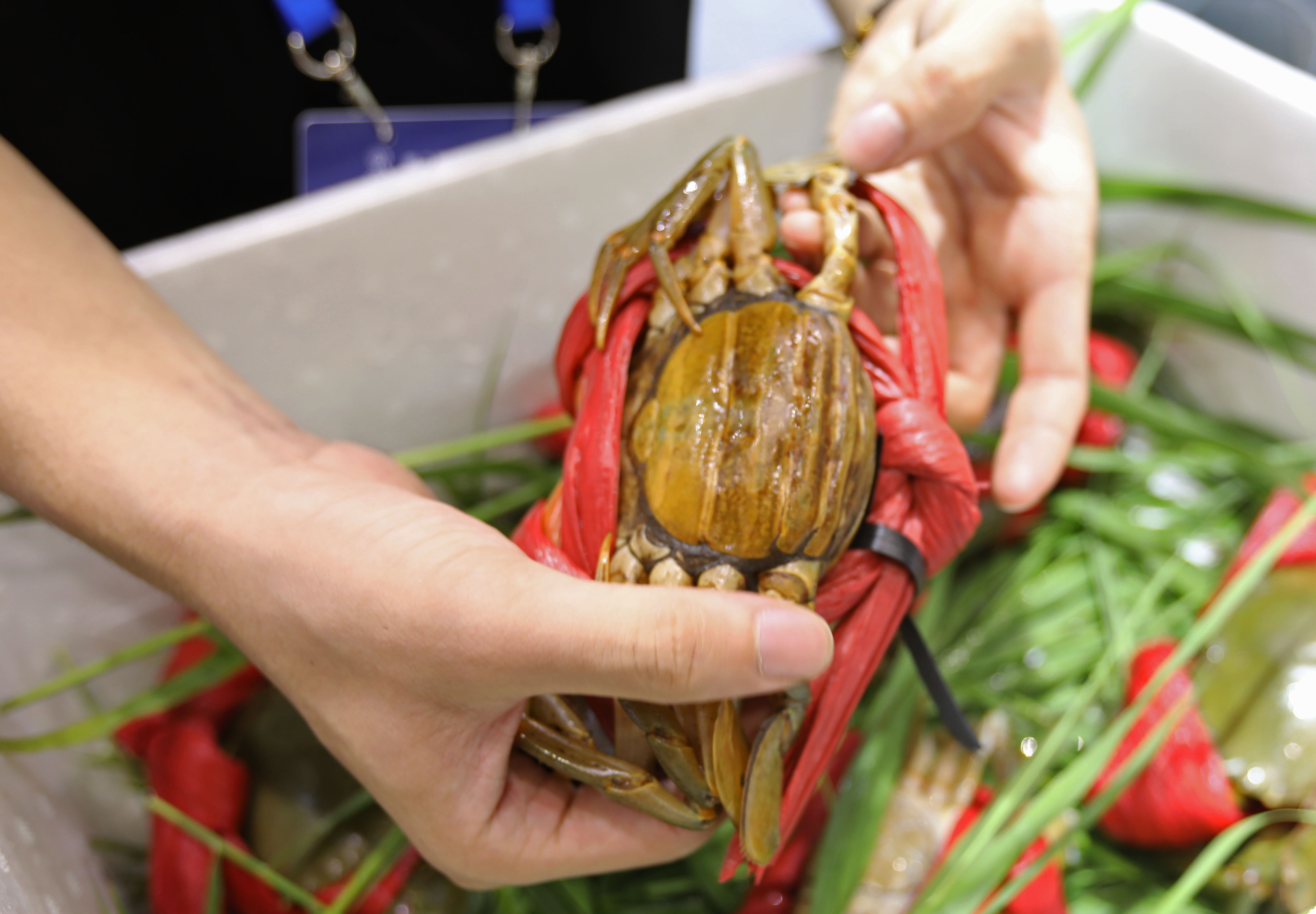 “这个时节出产的南沙青蟹比较肥美,正是吃蟹的好时候。”来自南沙渔业产业园的展位负责人肖晓霞介绍,南沙青蟹根据品类分为肉蟹、膏蟹、奄仔蟹等,一斤均价在150元左右,不同品类价格稍有差异。