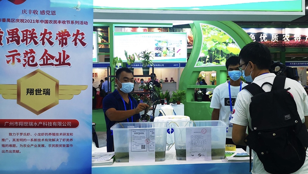 番禺区德记水果种植农民专业合作社、番禺区悦佳水果专业合作社、番禺区金泉农业专业合作社,以种植优质水果为主,将杨桃、火龙果、番石榴、无花果摆在展位上;以花卉种植为主的广州市卉通农业科技有限公司,展示了各种花卉;以水产养殖为主的广州市翔世瑞水产科技有限公司,展示了肥大、而生鲜的罗氏沼虾;以加工海产品为主的番禺区梁树添干制海产品农民专业合作社,展示了多种干制的海产品。