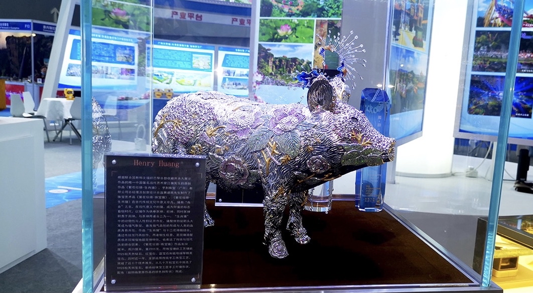 亨利珠宝(广州)有限公司设计总监黄建民介绍,该公司多年参加广州博览会,代表番禺珠宝产业珠宝形象,番禺珠宝具有世界先进水平,通过广州博览会宣传番禺先进产业、一流产品,扩大在全国各地的影响,效果非常好,得到很多客户的关注。