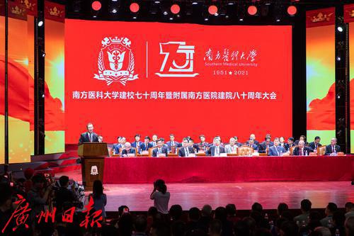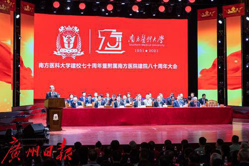 2021年10月30日,南方医科大学建校70周年暨附属南方医院建院80周年大会在南方医科大学举行。据了解,南方医院是南方医科大学第一附属医院、第一临床医学院,建于1941年,时为新四军第三师后方医院,建国后发展成为中国人民解放军第一军医大学第一附属医院。2004年,医院随第一军医大学整体移交广东省,更名为南方医科大学南方医院。医院现为广东省高水平医院“登峰计划”首批重点建设单位、委省共建国家创伤区域医疗中心、国家区域中医(风湿病)诊疗中心,拥有国家重点实验室和国家临床医学研究中心,有国家级重点学科5个、国家级临床重点专科17个。