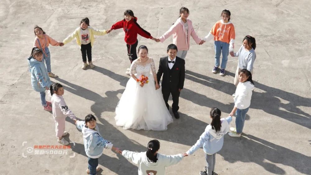 去年,两人决定结婚了。一开始两人也考虑过去大城市拍婚纱照,“确实没时间,出去一趟会耽误学生很多课,我们就干脆自己拍,我们本身就是支教老师,就想着和孩子们一起拍。”侯长亮说。