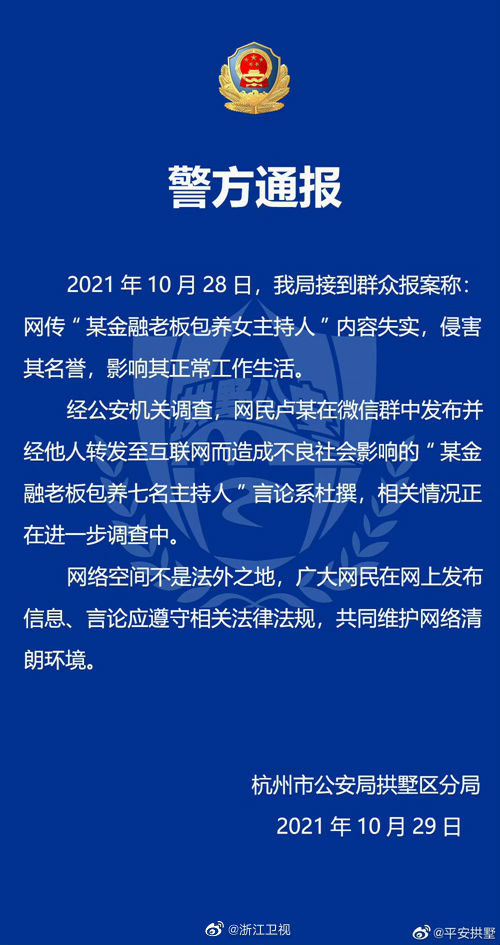 一、公安机关已受理相关主持人报警,经集团内部自查和公安机关调查,网传“包养浙江广电七个主持人”内容系杜撰。