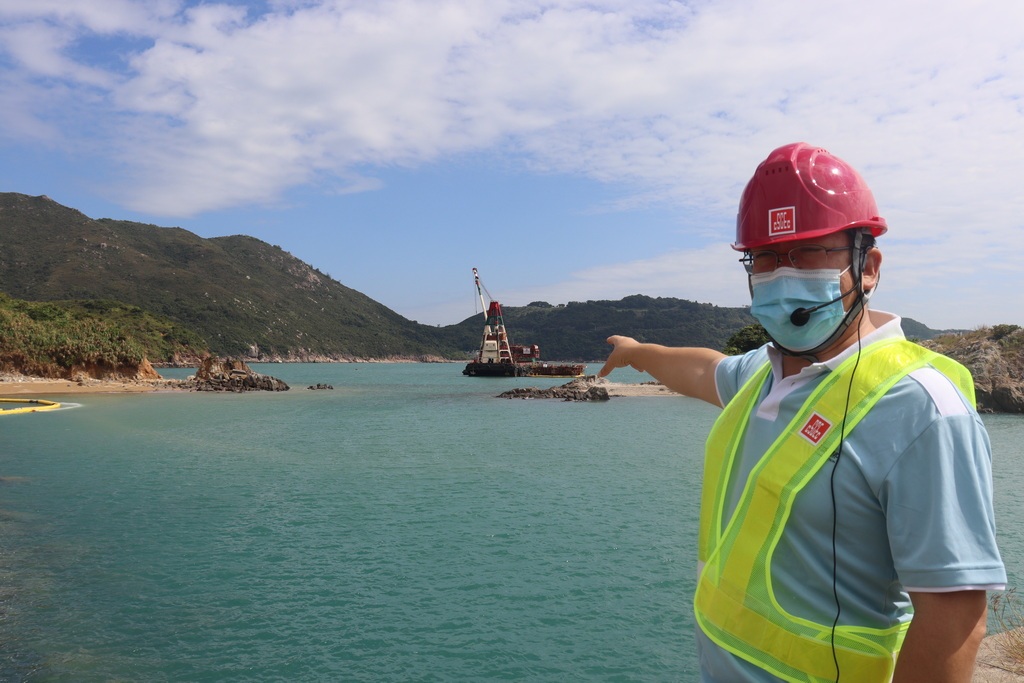 將軍澳海水化淡一期工程項目負責人張保平介紹項目情況。 澎湃新聞記者 彭玉潔 圖