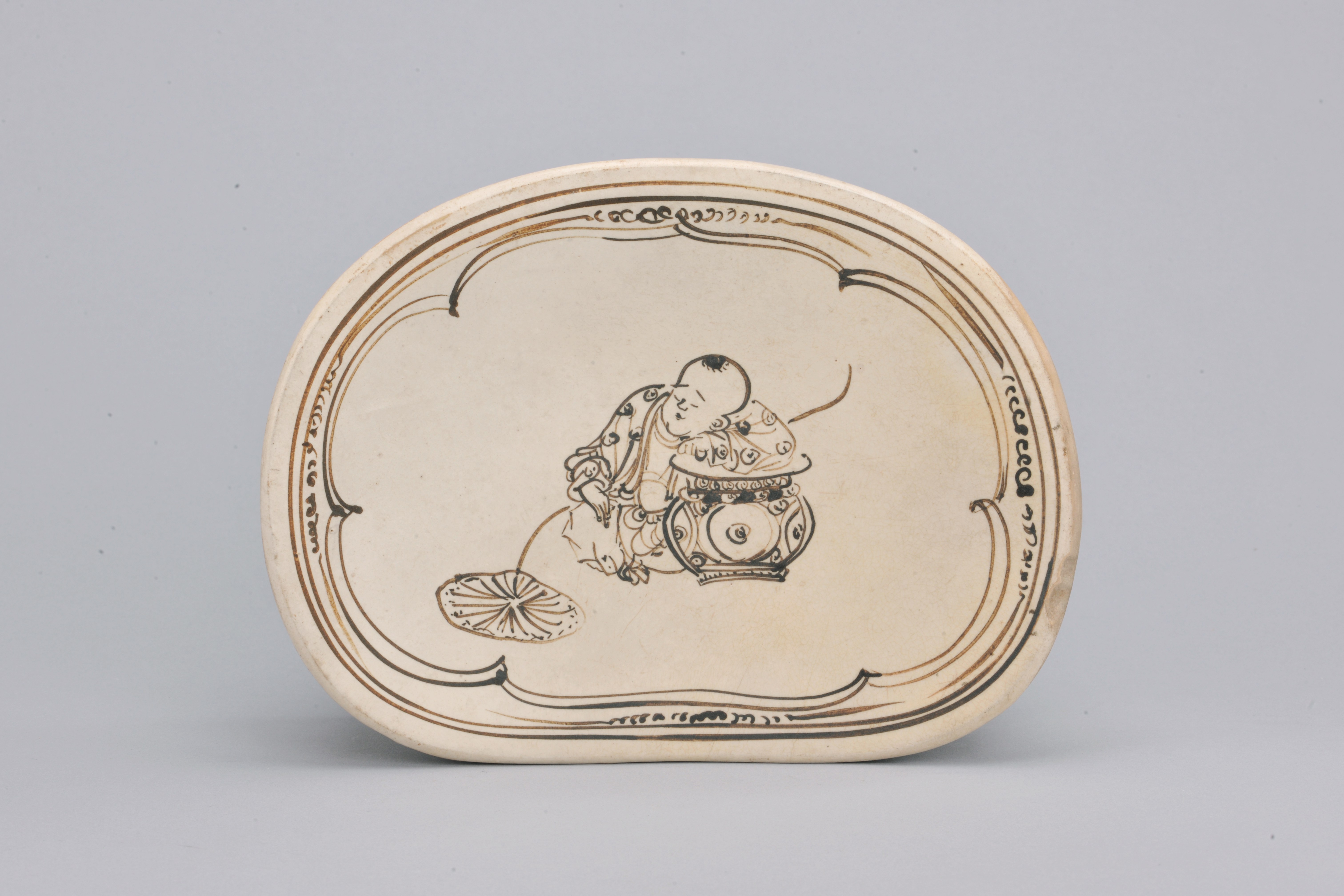 北宋-磁州窑-白地黑花持荷娃娃腰形枕