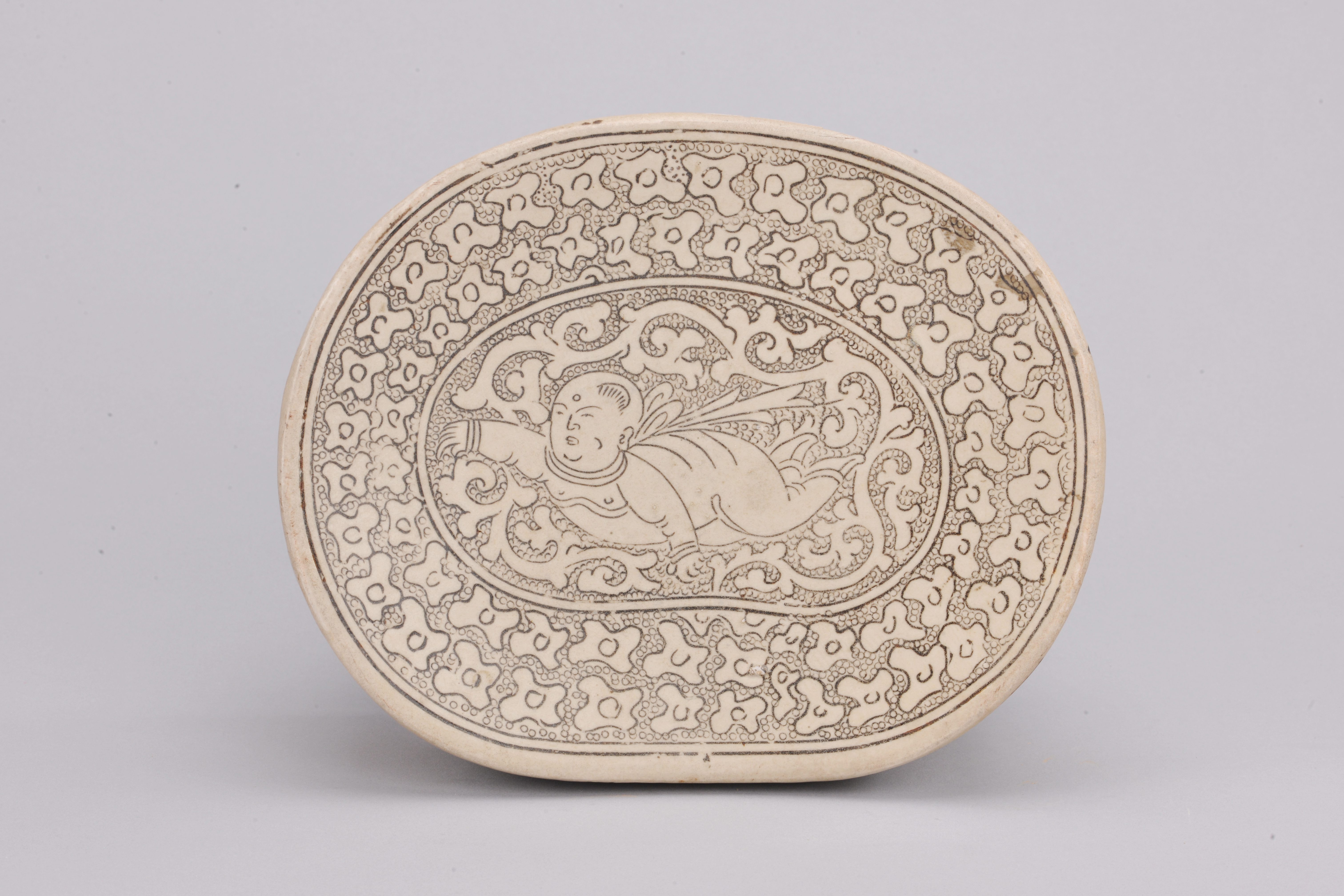 北宋-定窑-珍珠地划婴孩纹腰形枕