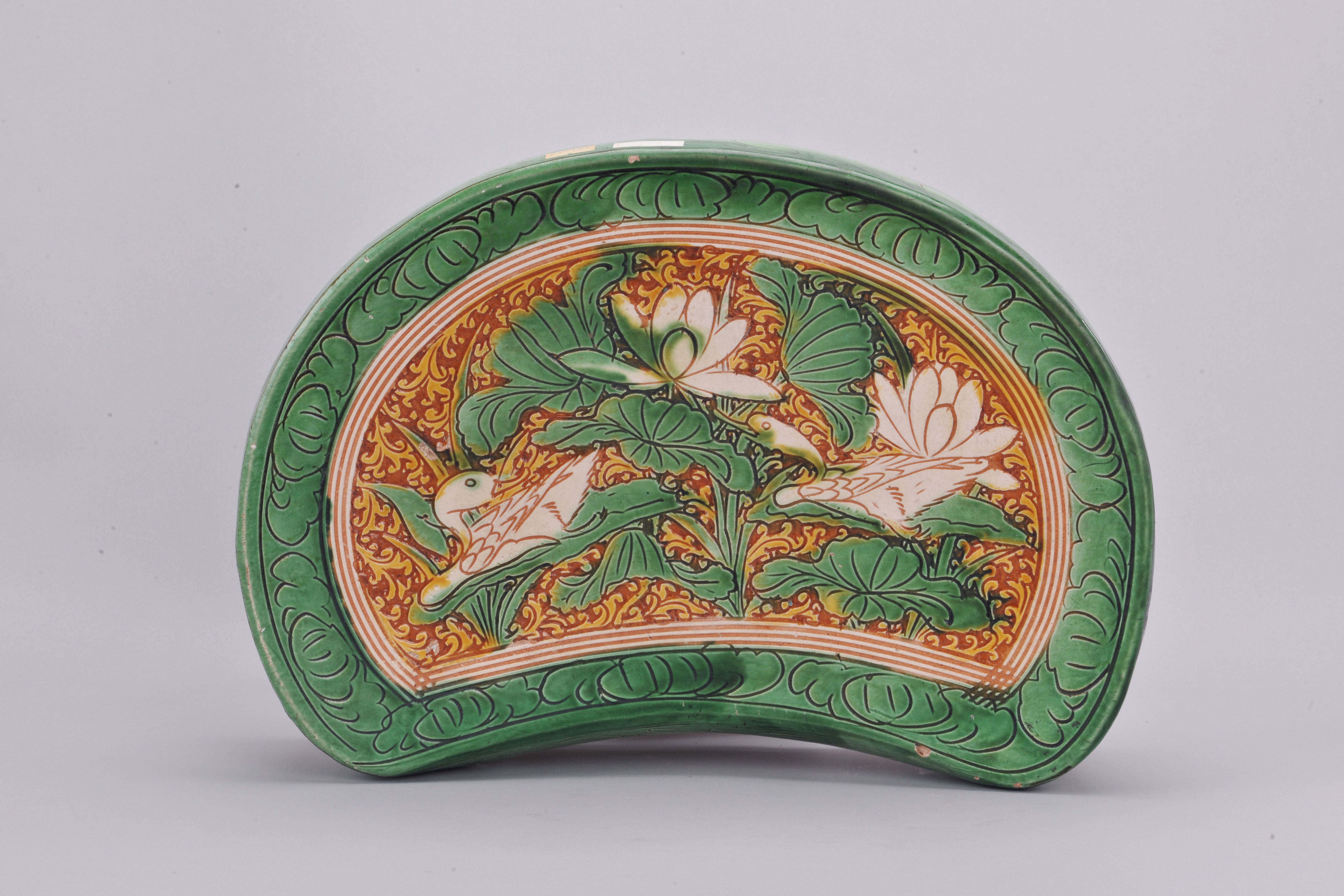 北宋-当阳峪窑-三彩刻莲凫纹腰形枕