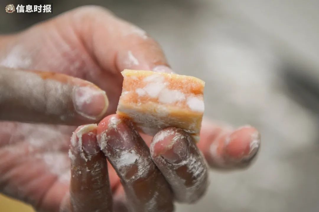 说起小凤饼,周小姐说:“当年,成珠楼的小凤饼堪比如今的白天鹅月饼,怎能让它就此没落了?”瓜子仁、芝麻仁、榄仁等5种果仁,是小凤饼的灵魂。尤其是榄仁,细细品尝,入喉时有淡淡的涩味,但香气回甘,最能引出小凤饼口味的丰富层次。