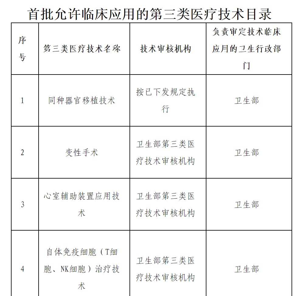 早在2009年3月,原卫生部发布文件《医疗技术临床应用管理办法》,表明“第三类医疗技术首次应用于临床前,必须经过卫生部组织的安全性论证和伦理审查以及技术审核。”在同年6月公布的《卫生部办公厅关于公布首批允许临床应用的第三类医疗技术目录的通知》中,自体免疫细胞(T细胞、NK细胞)治疗技术依据相关规定可以开展临床应用。且在同一年公布的《自体免疫细胞(T细胞、NK细胞)治疗技术管理规范》中,要求自体免疫细胞技术临床应用必须在三级甲等医院或省级及省级以上专科医院进行,且对自体免疫细胞制剂的制备、产品标准进行了规定。