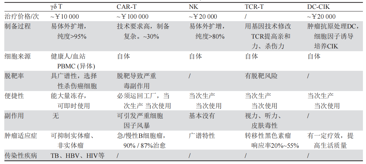 图为尹芝南教授团队对于不同细胞免疫治疗的比较研究