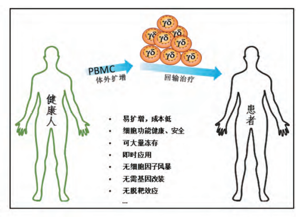 图为健康人来源的同种异体γδ-T细胞对肿瘤患者的治疗示意图