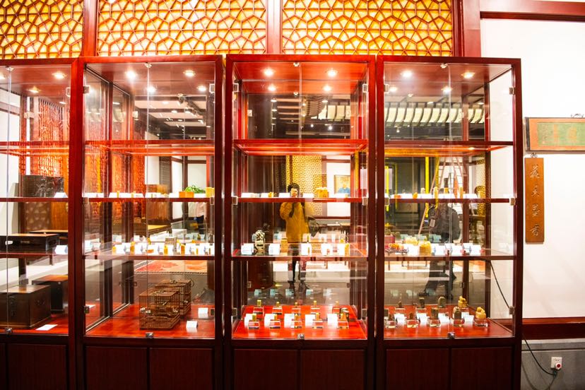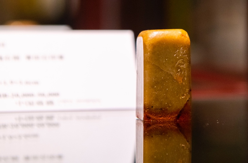 寿山石对章、芙蓉石太狮少狮钮大方章、青田石闲章、青田石四面印......自古以以来就有“一印在手、金石同寿"的说法,橱窗展柜中的一枚枚石材精良、工艺精细、篆刻精湛的印章,是自然与人文的完美结合。
