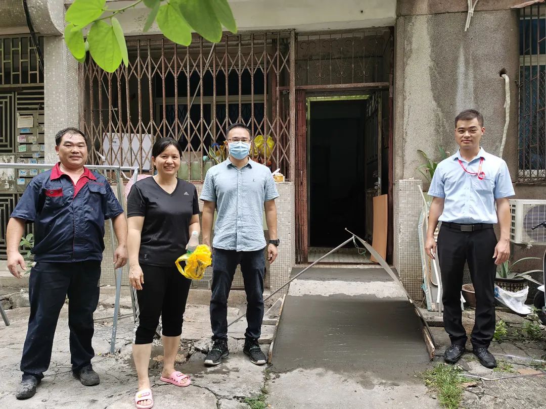 今年8月初,林尧欣接到银湾社区党支部书记的一通电话,得知银湾户籍一位残疾居民小锋,现搬回大石街一小区租住,因出租房门前台阶年久失修,损毁严重,不方便日常生活全靠轮椅的小锋出行。林尧欣马上提议让他带上物管维修部工人上门为小锋修建一条缘石坡道。对一位已搬离辖区的居民,也热心伸出援手,林尧欣只是觉得,赠人玫瑰,手留余香。