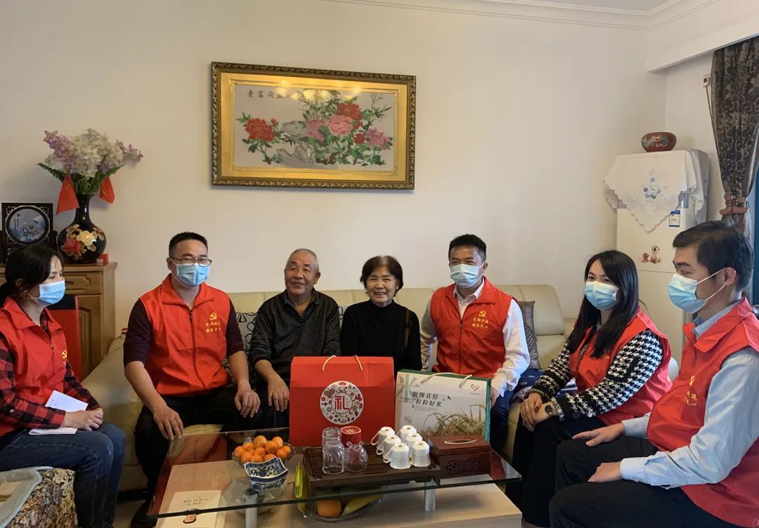 ▲联同社区党支部干部和敏捷集团党委干部对小区老党员进行春节慰问。