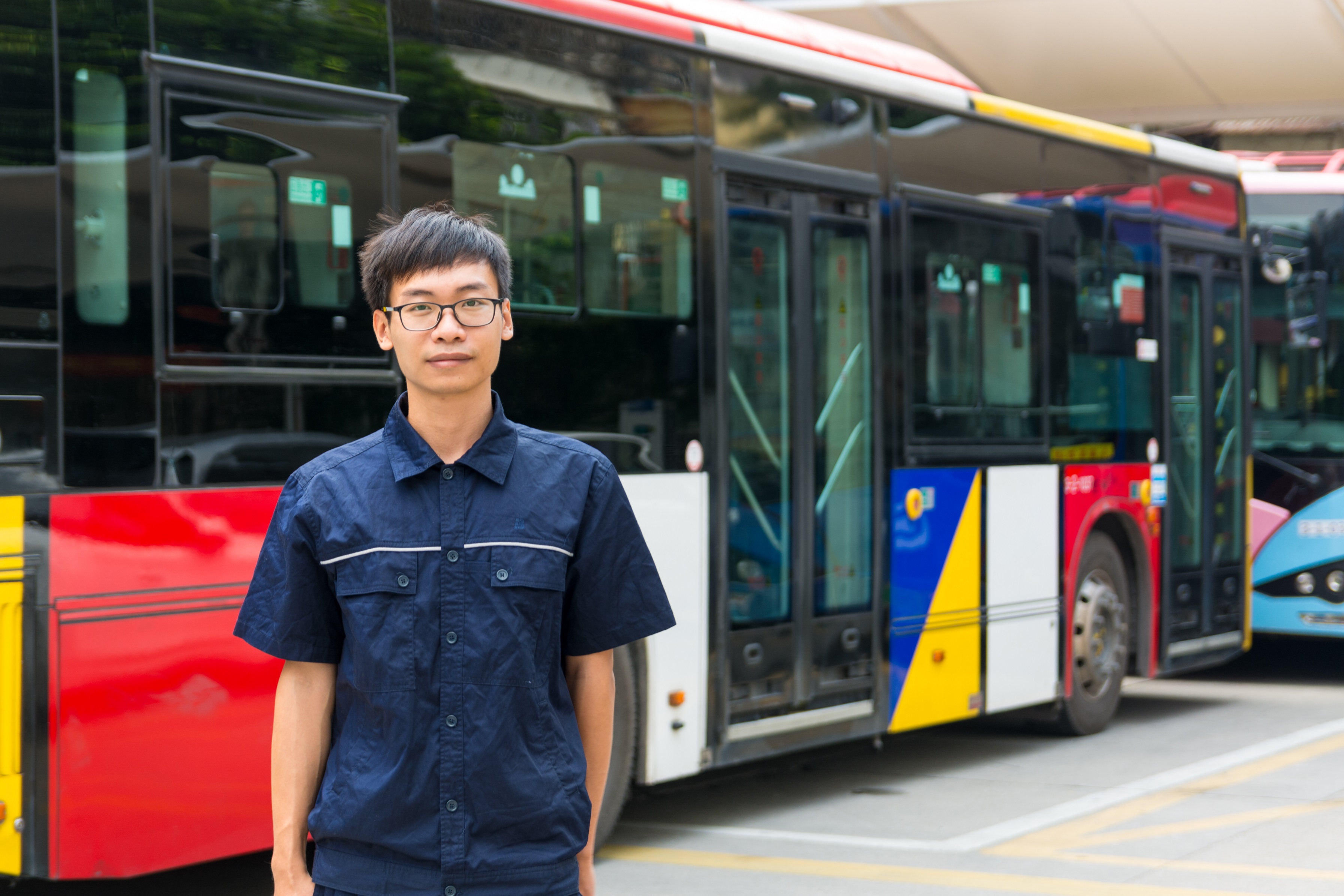 今年28岁的陈耀文,从事公交维修工作已有7个年头。随着电动公交车的逐渐普及,公交维修工们拿的工具不只是扳手,还有电脑和线路图。现在,陈耀文上“中班”,2点上班后,早班难以处理的问题都会转交到他的手中,“我是专门攻克‘难搞’的故障车。”陈耀文说。接手故障车后,陈耀文先了解之前同事做过哪些检修措施,再通过电脑和相关工具进一步排查车辆可能存在的故障,如果涉及电缆再根据线路图来排查。“现在我们有十几种公交车,每一种车型的线路图都不一样,一种车型的线路图就有四五张。我们都要记在心里。”陈耀文说,最久的一次故障排查了三四天,试车每天都要试上三四个小时,后来发现是电机控制器零件老化。“不能完全靠仪器,很多时候也会自学,在网上看一些视频、看书,自己钻研,还有很多故障是以前前辈遇到过,他们会分享一些经验,让我们少走弯路。”在陈耀文眼里,奋斗就是不怕困难、勇于挑战、勇于担当,享受复杂困难问题的解决过程与挑战性,别人解决不了的“疑难杂症”他都跃跃欲试,“每次解决一个难题都很有成就感”。不仅热爱这份工作,陈耀文更感到自己的责任重大:“只有保障车辆安全,才能保障车辆出场后的安全运行!”