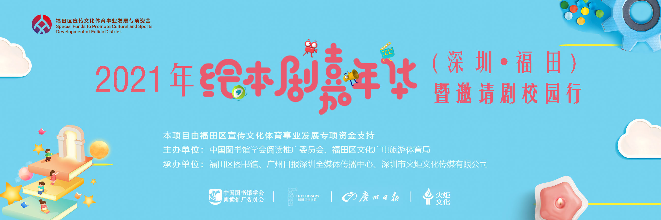 “2021年绘本剧嘉年华(深圳·福田)暨绘本剧大赛”由福田区宣传文化体育事业发展专项资金支持,由深圳市福田区图书馆、广州日报深圳全媒体传播中心、深圳市火炬文化传媒有限公司承办。