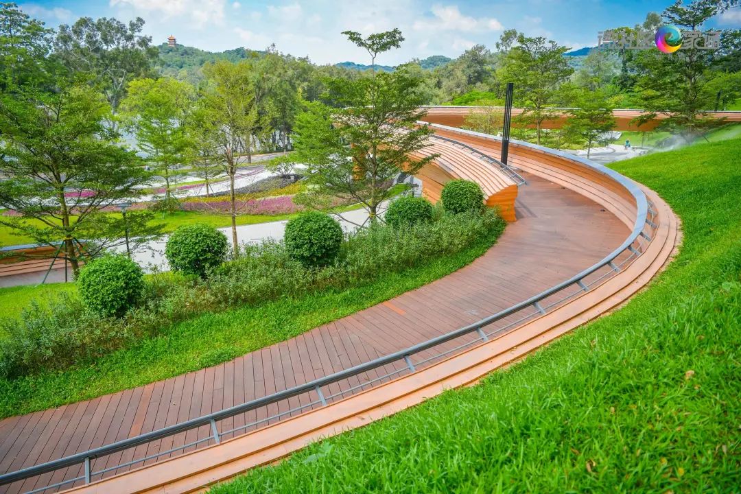 凭“一己之力”串联起广州城区内的八大城市公园的“云道”无疑是近两年来广州市最“火”的打卡点之一,而其中途经麓湖公园的“麓湖段”更是不少市民游客眼中的“云道颜值担当”。这段以橙黄色为主色调的“云道”建成并开放后,也为美丽的麓湖公园增添了更多的活力与欢声笑语。