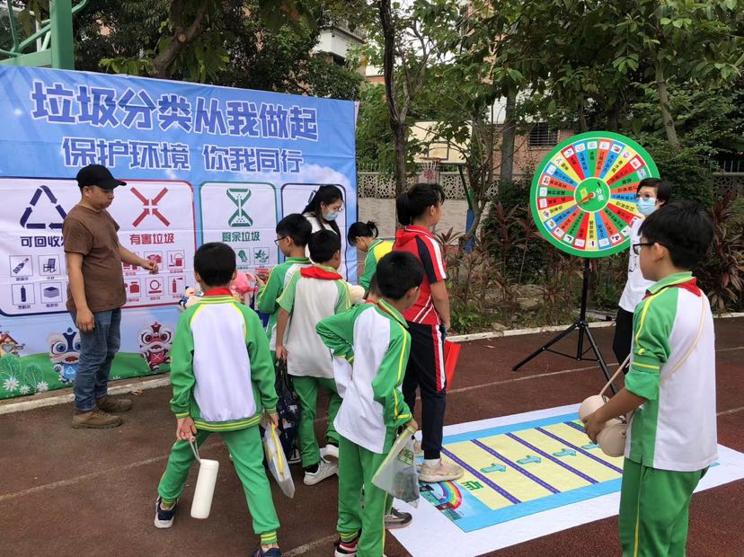 活动现场,志愿者向同学们宣传厨余垃圾、可回收物、其他垃圾、有害垃圾的去向以及他们的可利用价值,并通过垃圾分类游戏方式告诉同学们,所谓垃圾都是资源,将垃圾正确分类才能变废为宝,避免再次污染,保护环境。同学们热情高涨,踊跃参与。