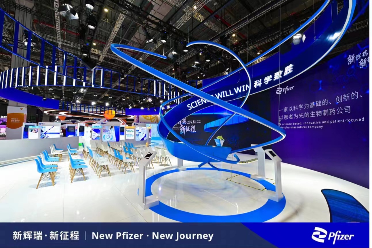 本届进博会,辉瑞展台总面积达800平方米,不仅在医疗器械及医药保健主展区有600平方米主展台,还在公共卫生防疫专区设立了200平方米展台,这也是参展企业中最大的展台之一。