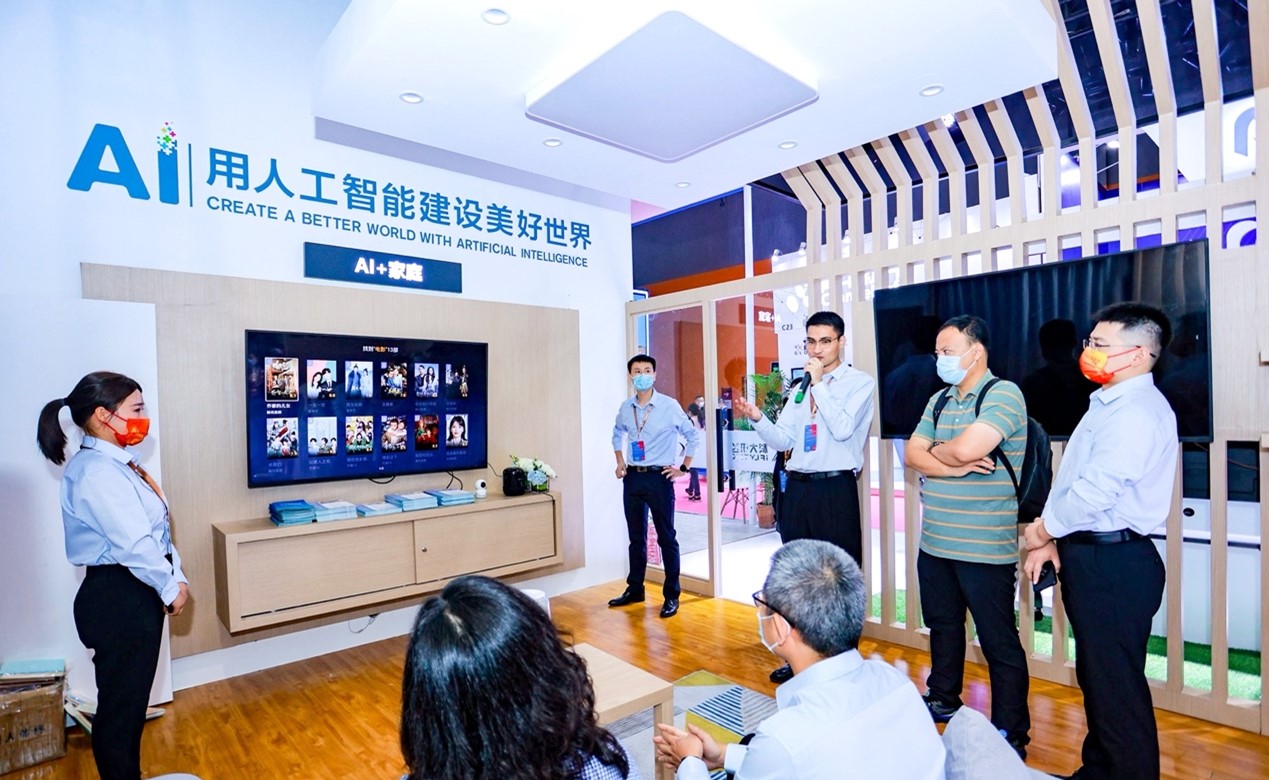 你是否想过,家里每一件家居都能与你“交流”?父母打开电视,就能和远方的子女对话,还能不时收到健康提醒;家庭AI管家会根据你的喜好,自动调节出合适的温度、照明、香氛,打造最舒适的私人空间……在科大讯飞的“智慧家庭”体验区,这些充满未来感和科技感的场景一一呈现。