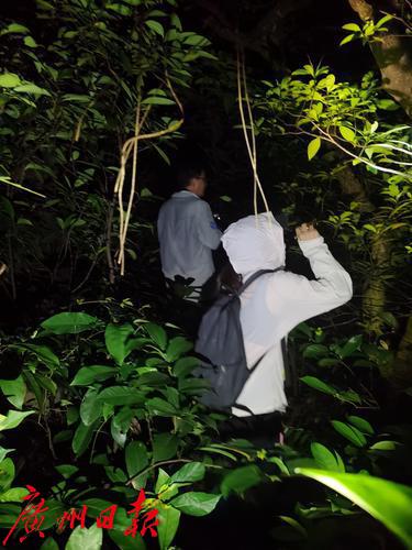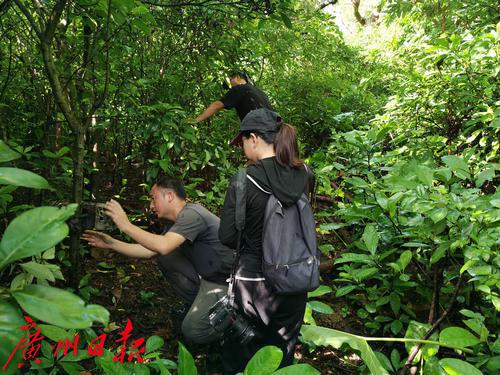 图为保护区工作人员进行红外相机安装及两爬样线调查。