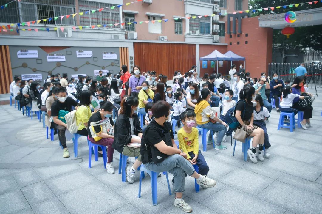 现场,设置有等候区、候诊区、咨询登记区、接种候种区、接种区、留观区和疑似异常反应处置区等区域。此前,学生家长已自行提前准备好“粤苗 APP”个人档案二维码、身份证复印件、《广东省新冠病毒疫苗接种知情同意书》等资料,进入校园后,各班级按照本班接种时段集队等候。