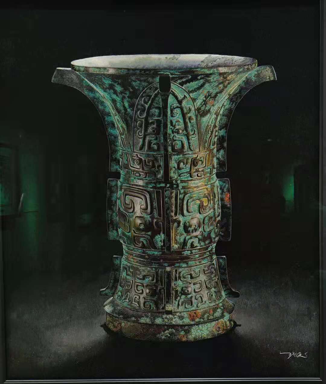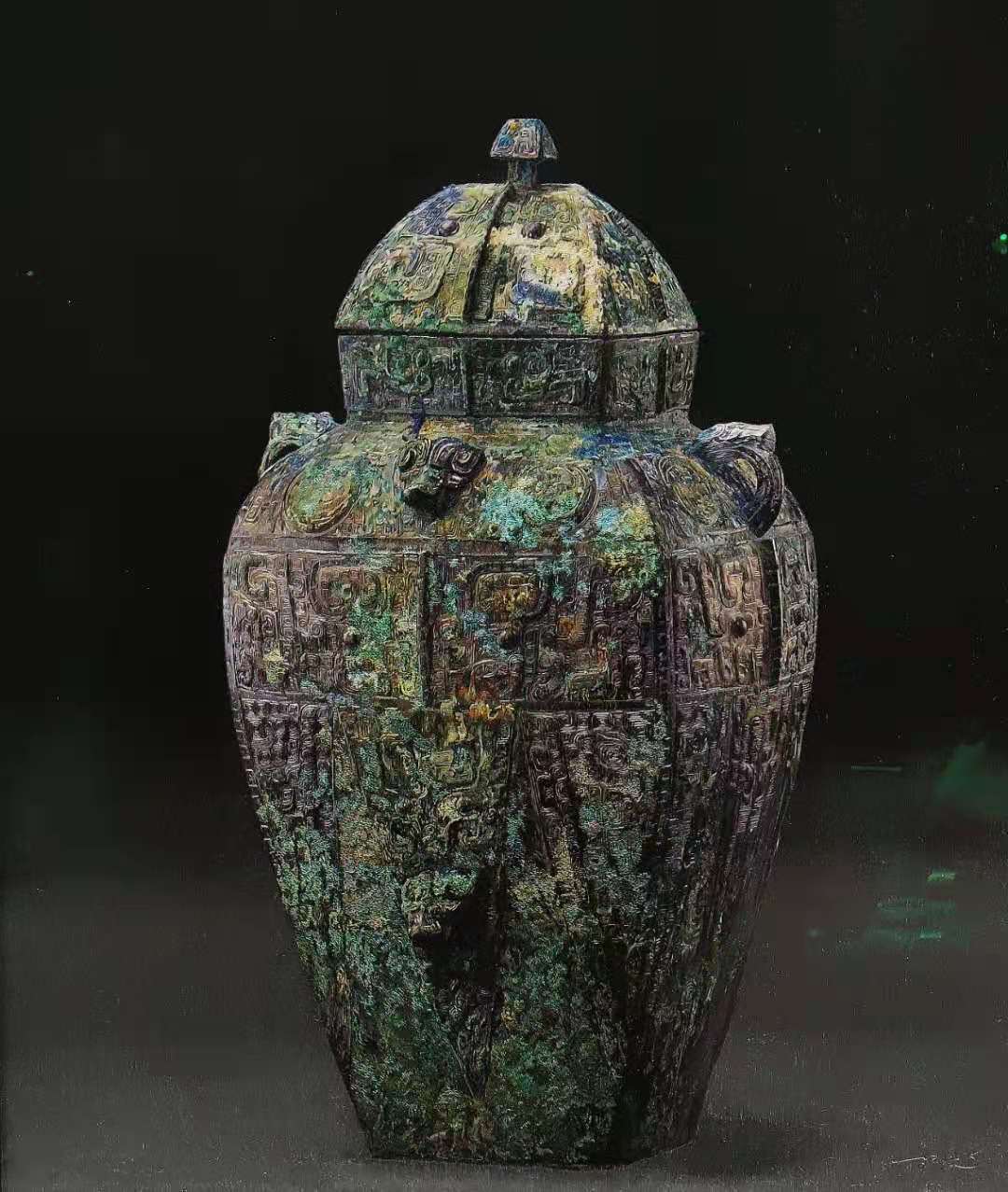 当中最富表现力的,可说是青铜器。王新元说,为了表现青铜器的厚重深沉的质感,他用了极短小的针脚。而在绣翡翠器时,每一针就要绣得更长些,也需要更多层的渲染,但又要把握好尺度,不能过“厚”,否则翡翠的通透晶莹之感会受到影响。