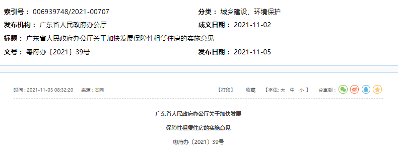 广东省人民政府网今日发布《广东省人民政府办公厅关于加快发展保障性租赁住房的实施意见》,全文如下: