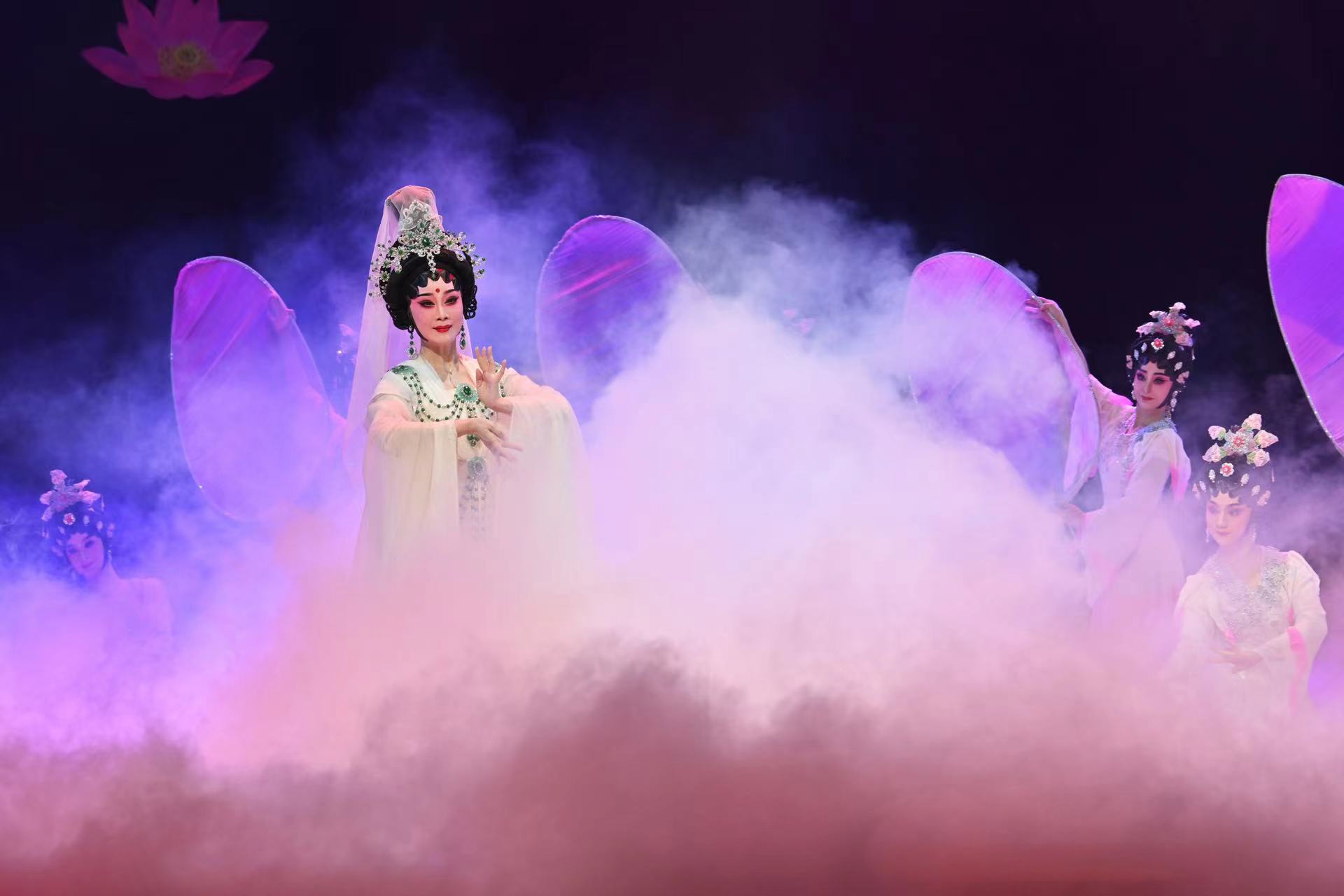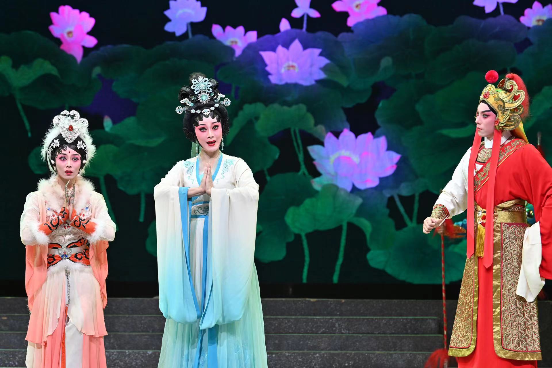 11月5日晚,由三位“梅花奖”演员丁凡、蒋文端、彭庆华领衔主演的粤剧《观音情度韦陀天》在广东粤剧艺术中心上演,受到观众戏迷的热烈追捧。