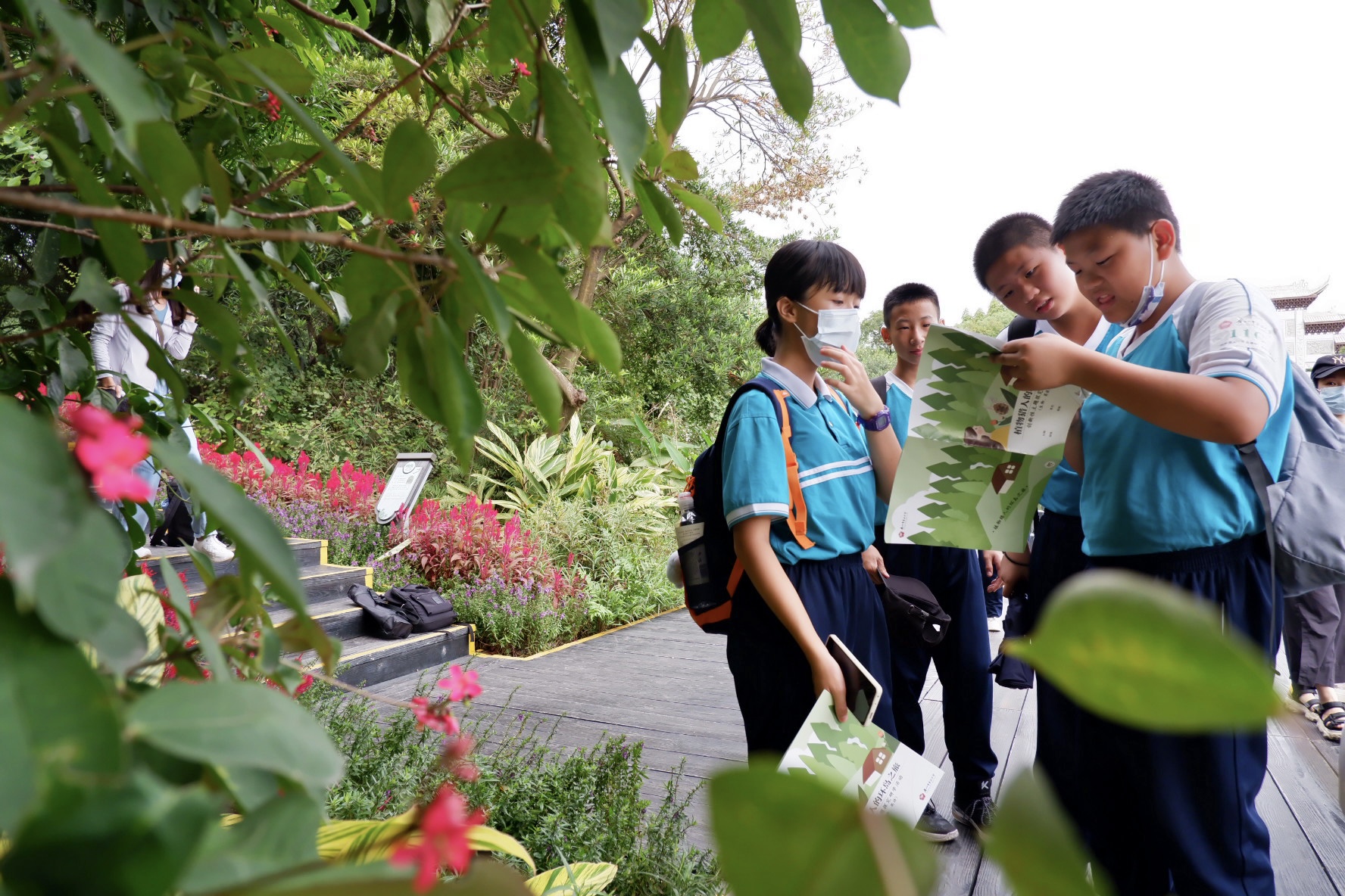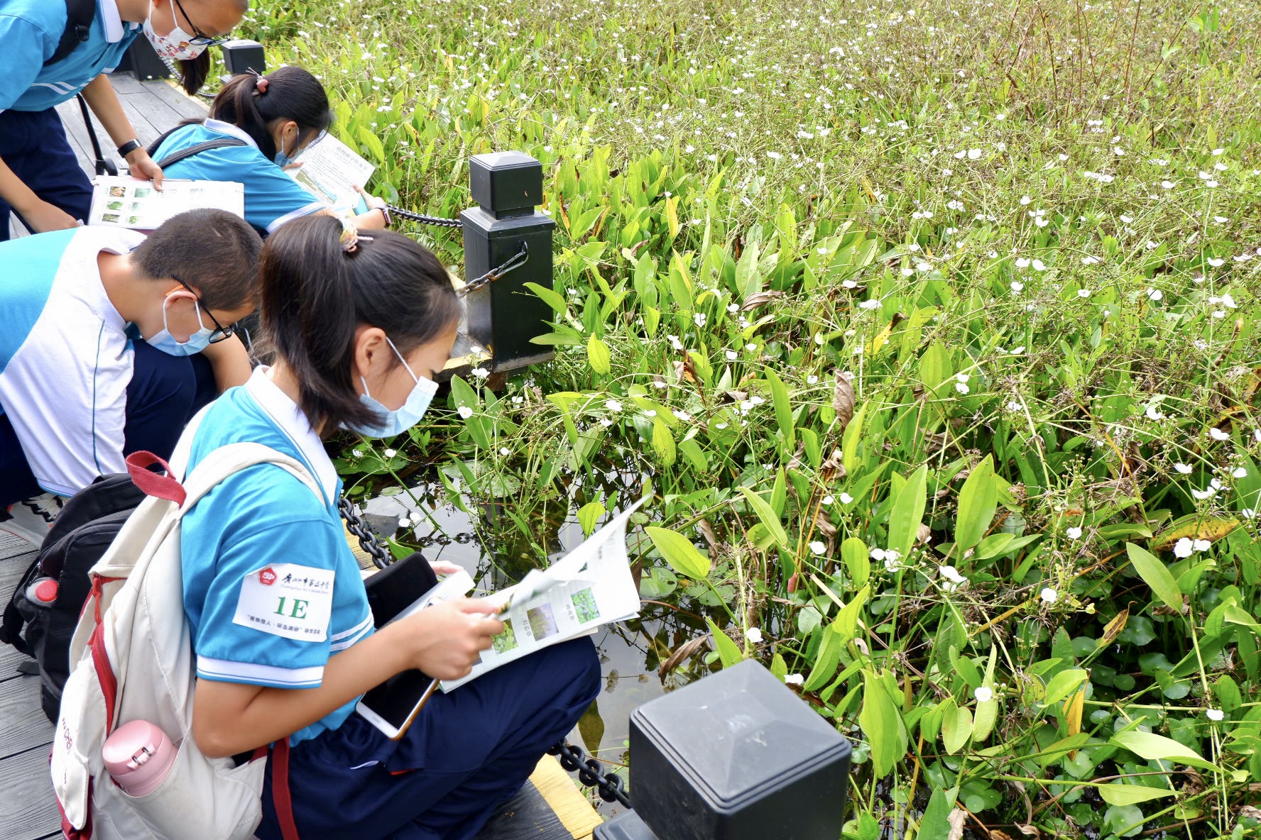 11月6日,海珠湿地公园格外热闹,随处可见穿着校服的学生,他们来自广州市第五中学七年级。在学校的组织下,他们扮演“植物猎人”,在这来了一场“环岛之旅”。