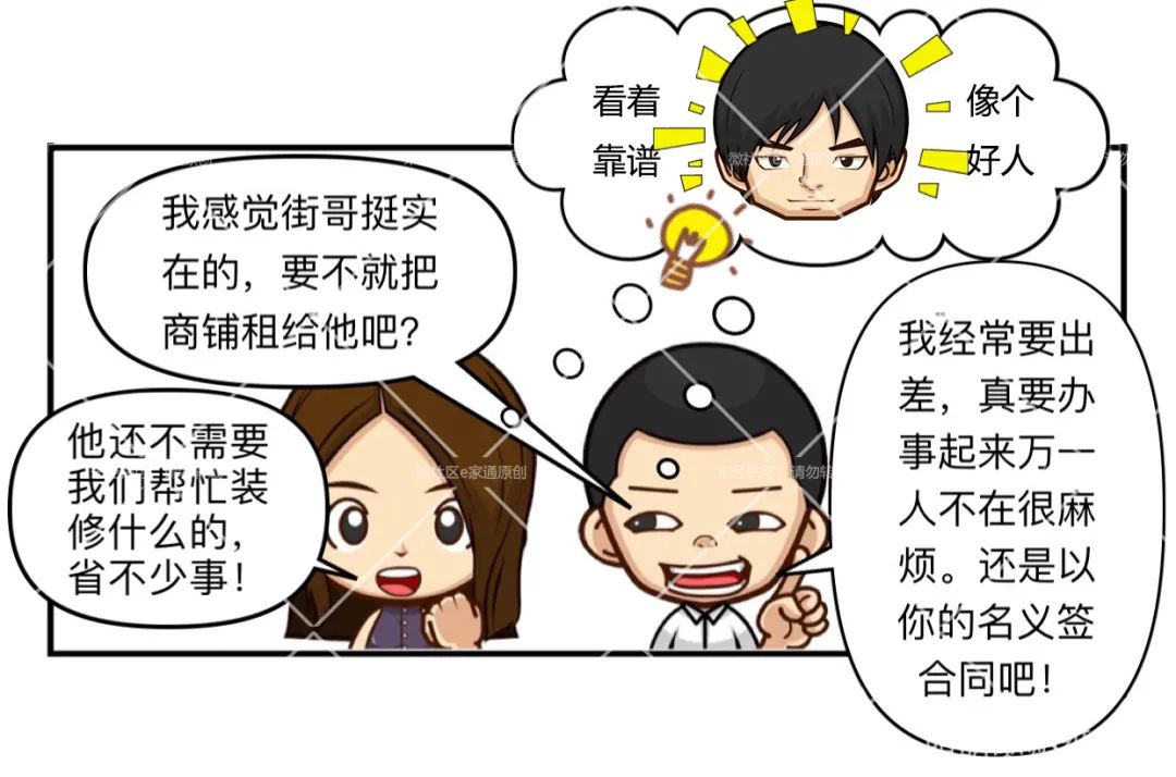 2016年11月,二人协商后,决定将商铺出租,收取租金补贴家用。经反复考量,他们最终决定,将商铺出租给街哥作为经营商店使用。