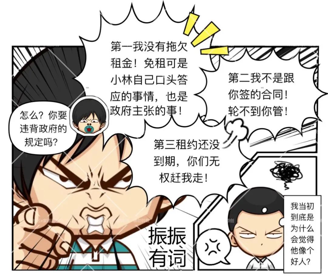 街哥认为,与自己签订合同的是小林而非小农,疫情期间减免租金本身也是政策倡导且小林曾口头承诺减租,自己一直依照约定履行合同,小农没有任何权利、也没有任何道理要求自己在合同结束前搬离。