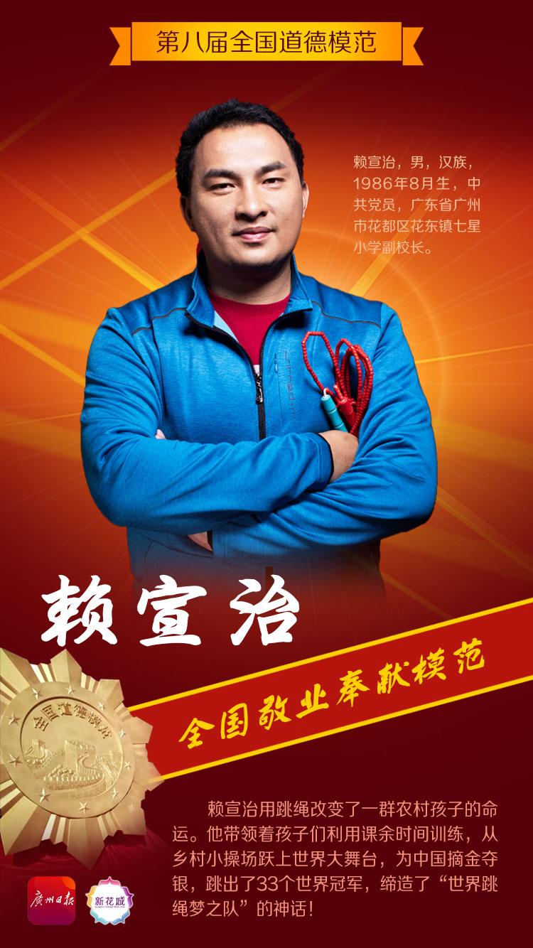 11月5日,两年一届的“德耀中华——第八届全国道德模范表彰活动”在京举行。广州市花都区花东镇七星小学体育老师、副校长赖宣治获评第八届全国道德模范荣誉称号。